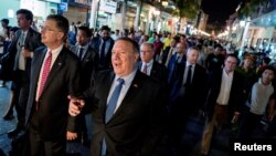 ပြံုံယမ်းမြို့တော်မှာ နှစ်ရက်ကြာ ဆွေးနွေးပြီးတဲ့နောက် ဝန်ကြီး Pompeo ဗီယက်နမ်နိုင်ငံကို ခရီးဆက်တာပါ။ အမေရိကန်ဟာ ရန်သူဟောင်းတွေနဲ့ ဆက်ဆံရေးသစ် တည်ဆောက်နိုင်တယ်ဆိုတာ အမေရိကန်နဲ့ ဗီယက်နမ်အကြား ပုံမှန်ဆက်ဆံရေး ၂၃ နှစ် ကြာ ရှိထားတာက သက်သေဖြစ်ပါတယ်လို့ ဝန်ကြီး Pompeo ကပြောပါတယ်။