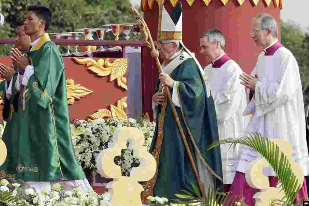 မြန်မာနိုင်ငံမှာ ရောက်ရှိနေတဲ့ ပုပ်ရဟန်းမင်းကြီးရဲ့ ခရီးစဉ်တတိယနေ့မှာ အများပြည်သူအတွက် ဝတ်ပြုဆုတောင်းပွဲကို ရန်ကုန်ကျိုက္ကစံကွင်းမှာ ပြုလုပ်ခဲ့ပါတယ်။ ပုပ်ရဟန်းမင်းကြီးရဲ့ မစ္ဆားတရားကို ကြားနာနိုင်ငံကြဖို့အတွက် မြန်မာနိုင်ငံဒေသစုံက ကက်သလစ်ဘာသာဝင်တွေဟာ ညသန်းခေါင်ကျော်ချိန်ထဲက ကျိုက္ကစံကွင်းကြီးထဲမှာ လာရောက်စောင့်စားနေခဲ့ကြတာပါ။