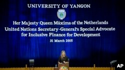မြန်မာနိုင်ငံကိုရောက်ရှိနေတဲ့ ကုလသမဂ္ဂ အတွင်းရေးမှူးချုပ်ရဲ့ အများပါဝင်ခွင့်ရရှိတဲ့ စီးပွားရေးစနစ် ရှေ့ရှုဆောင်ရွက်ပေးရေးဆိုင်ရာ အထူးအကြံပေးပုဂ္ဂိုလ် နယ်သာလန်မိဖုရား မက်ဆီမာဟာ ဒီကနေ့ ဧပြီလ ၁ ရက်နေ့ မနက်ပိုင်းမှာတော့ နေပြည်တော်က သမ္မတအိမ်တော်မှာ သမ္မတ ဦးသိန်းစိန် အပါအဝင် အခြားနိုင်ငံ့ခေါင်းဆောင်တွေနဲ့ တွေ့ဆုံခဲ့ပါတယ်။ နယ်သာလန်မိဖုရားအနေနဲ့ မြန်မာ့နိုင်ငံရေး ခေါင်းဆောင်ပိုင်းနဲ့ တွေ့ဆုံတဲ့အခါ အများပါဝင်ခွင့်ရရှိတဲ့ စီးပွားရေးစနစ်ရဲ့ အစိတ်အပိုင်းတခုဖြစ်တဲ့ အသေးစား ငွေကြေးဝန်ဆောင်မှု လုပ်ငန်းတွေ ရေရှည်တည်တံ့ဖို့ ဘယ်လို ထိန်းသိမ်းသွားမလဲ ဆိုတာကို အဖြေရှာဖို့ ဆွေးနွေးသွားမယ်လို့ ဗွီအိုအေကို ပြောဆိုလိုက်ပါတယ်။