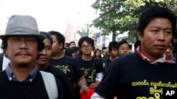 သတင်းလွတ်လပ်ခွင့်ကို အပြည့်အဝပေးဖို့နဲ့ သတင်းမီဒီယာတွေအပေါ် ထိန်းချုပ်ကန့်သတ်တာတွေ ချက်ခြင်း ရပ်တန့်ဖို့ ဒီကနေ့ ရန်ကုန်မြို့မှာ သတင်းသမားတွေက ဆန္ဒပြ တောင်းဆိုခဲ့ကြပါတယ်။