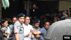ရခိုင်ပြည်နယ် မြောက်ပိုင်း အကြမ်းဖက်မှုတွေနဲ့ ပတ်သက်တဲ့ အစိုးရရဲ့ လျှို့ဝှက် စာရွက်စာတမ်းတွေ လက်ဝယ်တွေ့ရှိမှုနဲ့ ဖမ်းဆီး တရားစွဲဆိုခံရတဲ့ ရိုက်တာ သတင်းထောက် နှစ်ဦးကို ဒီကနေ့ ထောင်ဒဏ် ၇ နှစ်စီ ပြစ်ဒဏ်ချမှတ်လိုက်ပါတယ်။ နိုင်ငံတော် လျို့ဝှက်ချက် အက်ဥပဒေကို ချိုးဖောက်မှုနဲ့ ရိုက်တာ သတင်းထောက် ကိုဝလုံးနဲ့ ကိုကျော်စိုးဦးတို့ကို အခုလို ပြစ်ဒဏ်စီရင်လိုက်တာက သတင်းလွတ်လပ်ခွင့် အပေါ် ကြီးမားတဲ့ ခြိမ်းခြောက်မှု ဖြစ်သလို မြန်မာ သတင်းသမားတွေကိုပါ ခြိမ်းခြောက်လိုက်တာလို့ နိုင်ငံတကာ လူ့အခွင့်အရေး စောင့်ကြည့်ရေး အဖွဲ့ HRW က အာရှရေးရာ ဒုတိယ ညွှန်ကြားရေးမှူး Phil Robertson က ပြောဆိုလိုက်ပါတယ်။