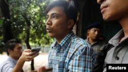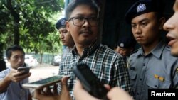 နိုင်ငံတော်လျှို့ဝှက်ချက်ဥပဒေချိုးဖေါက်မှုနဲ့ တရားစွဲဆိုခံနေရတဲ့ Reuters သတင်းထောက် ကိုဝလုံးနဲ့ကိုကျော်စိုးဦးတို့ အဖမ်းအဆီးခံနေရတာ မနေ့က ၆လပြည့်ခဲ့ပါပြီ။ စစ်ဆေးမှုတွေကတော့ အခုထိမပြီးဆုံးသေးပါဘူး။ သတင်းထောက် ၂ဦးကတော့ သူတို့အမှုကို မကြာကြာအောင် အချိန်ဆွဲပြီးလုပ်နေတယ်လို့ယူဆနေကြပါတယ်။ အချိန်၆လကြာခဲ့ပေမဲ့ သူတို့တွေ စိတ်ဓါတ်မကျဘူး လို့လည်းပြောပါတယ်။ ဒီအကြောင်း ကိုကျော်အောင်လွင်က ဆက်ပြီးပြောပြပါလိမ့်မယ်။