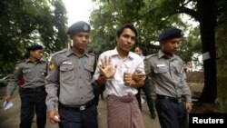 နိုင်ငံတော်လျှို့ဝှက်ချက်ဥပဒေနဲ့ တရားစွဲဆိုခံနေရတဲ့ Reuters သတင်းထောက် ကိုဝလုံးနဲ့ကိုကျော်စိုးဦးတို့ဟာ မနေ့ တုန်းက ရန်ကုန်တရားရုံးမှာ ဒုတိယမြောက်နေ့အဖြစ် ထွက်ဆိုချက်တွေပေးခဲ့ကြပါတယ်။ သူတို့ကိုဖမ်းဆီးခဲ့တုန်းက သူတို့ရဲ့ခေါင်းတွေကို အစွပ်တွေစွပ်ပြီးဖမ်းဆီးခေါ်ဆောင်ခဲ့ကြောင်းနဲ့ သုံးရက်ဆက်တိုက်အိပ်ခွင့်မရအောင် စစ်ဆေးတာ ခံခဲ့ရကြောင်း သတင်းထောက်ကိုဝလုံးကပြောပါတယ်။ မနေ့ကရုံးထုတ်ခဲ့တဲ့အခြေအနေတွေကို ကိုကျော်အောင်လွင်က ဆက်ပြီးပြောပြပါလိမ့်မယ်။
