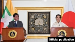 ဂျပန်နိုင်ငံခြားရေးဝန်ကြီး Taro Kono ဟာ နိုင်ငံတော်အတိုင်ပင်ခံပုဂ္ဂိုလ် ဒေါ်အောင်ဆန်းစုကြည်နဲ့ ဒီကနေ့ နေပြည်တော်မှာ တွေ့ဆုံပြီး ရခိုင်ပဋိပက္ခကို ကူညီဖြေရှင်းပေးရေး အပါအဝင် မြန်မာနိုင်ငံရဲ့ ဒီမိုကရေစီ အသွင်ကူးပြောင်းလုပ်ငန်းစဉ်တွေနဲ့ ပြည်တွင်း ငြိမ်းချမ်းရေး ဖော်ဆောင်ရေးလုပ်ငန်းတွေမှာ ဂျပန်က ကူညီပေးသွားမယ့်အရေးတွေကို ဆွေးနွေးခဲ့ကြကြောင်း မြန်မာနိုင်ငံခြားရေးဌာနက သတင်းထုတ်ပြန် ပါတယ်။