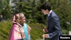 ဘင်္ဂလားဒေ့ရှ်ဝန်ကြီးချုပ်Sheikh Hasina က ရိုဟင်ဂျာအကျပ်အတည်းကို ဖြေရှင်းဖို့အတွက် လေးချက်ပါ အဆိုပြုချက်တရပ်ကို တင်ပြလိုက်ပါတယ်။ ကနေဒါနိုင်ငံမှာ စနေနေ့ကကျင်းပတဲ့ G-7 ထိပ်သီးအစည်းအဝေးအပြီး အထူးတိုးချဲ့အစည်းအဝေးမှာ စီးပွား ရေးအင်အားကြီး ခုနစ်နိုင်ငံကို ဝန်ကြီးချုပ် Hasina က သူ့ရဲ့အဆိုပြုချက်ကို တင်ပြလိုက်တာပါ။