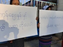 ဖဖောျဝါရီ ၁၀ရကျက စတငျခဲ့တဲ့ ရနျကုနျတိုငျး၊ လှိုငျသာယာမွို့နယျက တိုငျရီဖိန ပျစကျရုံရဲ့ ဆန်ဒထုတျဖောျတောငျးဆို မှုဟာလေးရကျ ကွာလာပွီ ဖွဈ ပမေယ့ျ အခုထိတော့ ဘာမှ ထူးခွားမှုတော့ မရှိသေးပါဘူး။ လုပျခလစာ တိုးမွှင့ျပေးဖို့ အပါအဝငျ အလုပျသမားအခှင့ျအရေးတှေ ဆုံးရှုံးနတေဲ့အတှကျ ဒါကို အလုပျရှငျကရောအစိုးရကပါ တာဝနျယူ ဖွရှေငျး ပေးဖို့ တောငျးဆိုနေ တာ ဖွဈကွောငျး တိုငျရီအလုပျသမားသမဂ်ဂ အဖှဲ့ဝငျ မမိုးဝေ ကပွောပါတယျ။