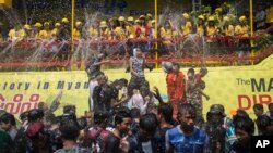 ဒီနှစ်သင်္ကြန်မှာ တကသ ကျောင်းသားအဖွဲ့ကလည်း ခွပ်ဒေါင်းမျိုးဆက်ဆိုတဲ့ နာမည်နဲ့ သံချပ်အဖွဲ့တဖွဲ့လည်း လိုက်လံဖျော်ဖြေနေပြီး အစိုးရကို သရော်တဲ့ သံချပ်တွေ ထိုးကြတယ်လို့ သိရပါတယ်။
