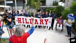 အမေရိကန်သမ္မတရွေးကောက်ပွဲ ကျင်းပဖို့ သီတင်း ၂ ပတ်သာ လိုတော့တဲ့အချိန် သမ္မတအဖြစ် ရွေးကောက်တင်မြှောက်ခံရရေးအတွက် အကြိမ်အနယ် ယှဉ်ပြိုင်ရမယ့် ပြည်နယ်တခုဖြစ်တဲ့ Florida ပြည်နယ်မှာ ရီပတ်ဘလစ်ကန် သမ္မတလောင်း Donald Trump နဲ့ ဒီမိုကရက်သမ္မတလောင်း Hillary Clinton တို့ဟာ အင်္ဂါနေ့က မဲဆွယ် စည်းရုံးနေကြပါတယ်။