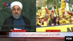 အဖွဲ့ဝင် ၁၉၃ နိုင်ငံပါ ကုလသမဂ္ဂအထွေထွေညီလာခံကြီးမှာ ကမ္ဘာ့ခေါင်းဆောင်တွေကို ဗုဒ္ဓဟူးနေ့က အီရန်သမ္မတ ဟာဆန်ရိုဟာနီက မိန့်ခွန်းပြောကြားခဲ့ရာမှာ အီရန်အနေနဲ့ ဘယ်သူရဲ့ ခြိမ်းခြောက်မှုကိုမှ သည်းခံမှာ မဟုတ်ကြောင်းနဲ့ ထရန့်ရဲ့ မကျေနပ်ချက်တွေ အကြောင်း ပြောကြားခဲ့တာတွေကိုလည်း သူ့အနေနဲ့ ဂရုမစိုက်တဲ့အကြောင်း ပြောကြားခဲ့ပါတယ်။