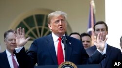 အမေရိကန်ပြည်ထောင်စုက အိမ်နီးချင်း ကနေဒါနဲ့ မက်ဆီကိုနိုင်ငံတွေနဲ့ ကုန်သွယ်ရေးစာချုပ် အသစ်တခု ချုပ်ဆိုဖို့ ရခဲ့တဲ့ သဘောတူညီချက်ဟာ ကမ္ဘာပေါ်က ကုန်သွယ်ရေးသဘောတူညီချက်တွေထဲမှာ အကြီးမားဆုံးနဲ့ အကောင်းဆုံးသဘောတူညီချက် ဖြစ်ကြောင်း သမ္မတ Donald Trump နဲ့ သူ့အစိုးရအဖွဲ့တွေက ပြောဆိုကြပါတယ်။