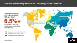 အမေရိကန် ပြည်ဝင်ခွင့် ကန့်သတ်မယ့် သမ္မတ Donald Trump ရဲ့ လူဝင်မှုကြီးကြပ်ရေး မူဝါဒဟာ အငြင်းပွားစရာတွေနဲ့အတူ လတ်တလော ဆိုင်းငံ့ထားရပေမဲ့ - အမိန့်ထုတ်ပြန်လိုက်တဲ့ ရက်ပိုင်းအတွင်းမှာပဲ ကမ္ဘာတဝန်းက ခရီးသွား လုပ်ငန်းတွေမှာ သိသိသာသာ ရိုက်ခတ်နေပါပြီ။ ခရီးသွားလုပ်ငန်း ကျွမ်းကျင်သူ Henry Harteveldt ကတော့ အခုအချိန်မှာ အမေရိကန်ဟာ ခရီးသွားတွေကြား ရေပမ်းသိပ်မစားတဲ့ နေရာတခု ဖြစ်လာနေတယ်လို့ ပြောပါတယ်။