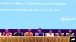ဒီတပတ် မြန်မာ့မျက်မှောက်ရေးရာ ဆွေးနွေးခန်းမှာ NCA ပြည်လုံးကျွတ် အပစ်ရပ်စဲရေး သဘောတူညီချက်ကို မွန်ပြည်သစ်ပါတီ နဲ့ လားဟူဒီမိုကရက်တစ်အစည်းအရုံးတို့ လက်မှတ်ရေးထိုးလိုက်ခြင်းဟာ မြန်မာ့ငြိမ်းချမ်းရေးဖြစ်စဉ်အတွက် ဘယ်လောက်အရေးပါ ပါသလဲ။ တိုင်းရင်းသားရေးရာတွေကို တောက်လျှောက်လေ့လာသုံးသပ်နေတဲ့ ရန်ကုန်အခြေစိုက် VOA သတင်းထောက် ကိုမိုးဇော် နဲ့ ဦးကျော်ဇံသာတို့ ဆွေးနွေးသုံးသပ်ထားပါတယ်။