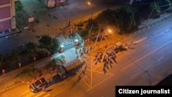 " ... ကျနော်တို့ အနောက်ပိုင်းဆေးရုံကို ဝင်စီးပြီး ဝင်ဆွဲ နေကြပါတယ် ။ လမ်းထဲထိ ဝင်ပစ်နေပါတယ်။ ရဲတွေ အင်အား အများကြီးပါ .... "